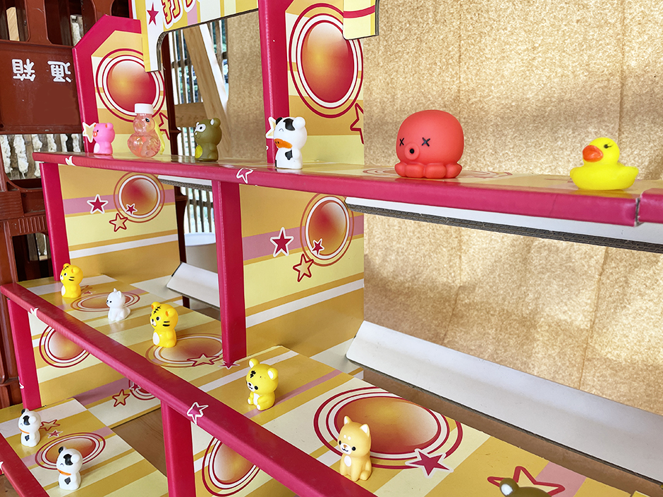 ちなみにこの的がなかなかのくせ者で、絶妙に小さく、そう簡単には倒れてくれません。