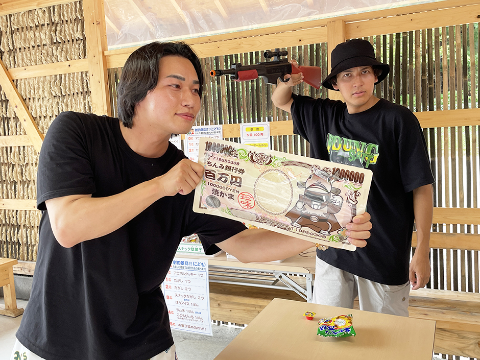 お子さまにはお菓子やアイス、大人向けには冷えたビールやフランクフルトなど、的を倒した数に応じて景品のグレードが上がるルールだったので、皆さま最後の一発まで本気モード。